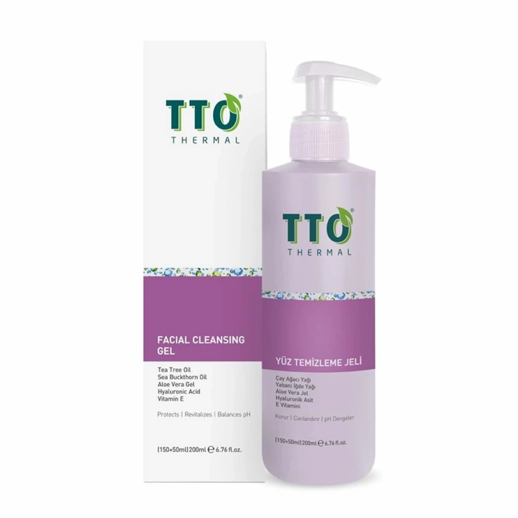 Yeterli miktardaki TTO THERMAL Yüz Temizleme Jeli cilde yedirilerek ve nazikçe masaj yapılarak köpürtülüp cilt temizlenir.